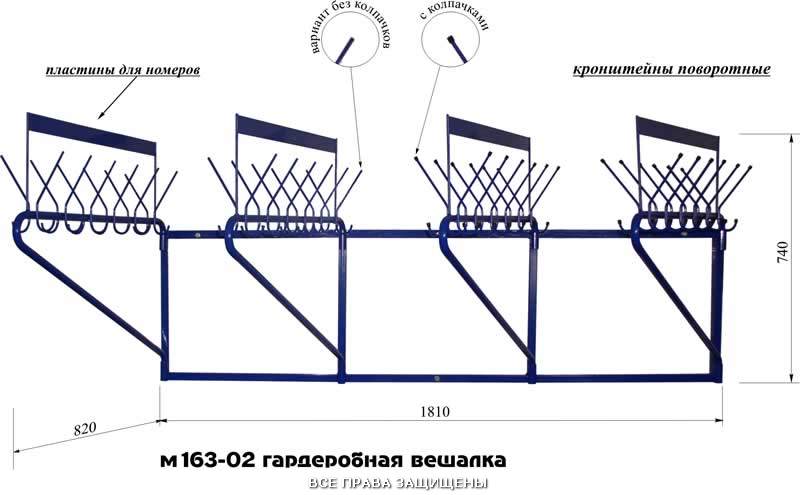 Description: Hanger dressing room wall is designed to accommodate coats and hats in the wardrobes of public facilities: schools, concert and theatre institutions, public catering enterprises, medical institutions, etc. Hanger is recommended for use in the dressing rooms under the following conditions: